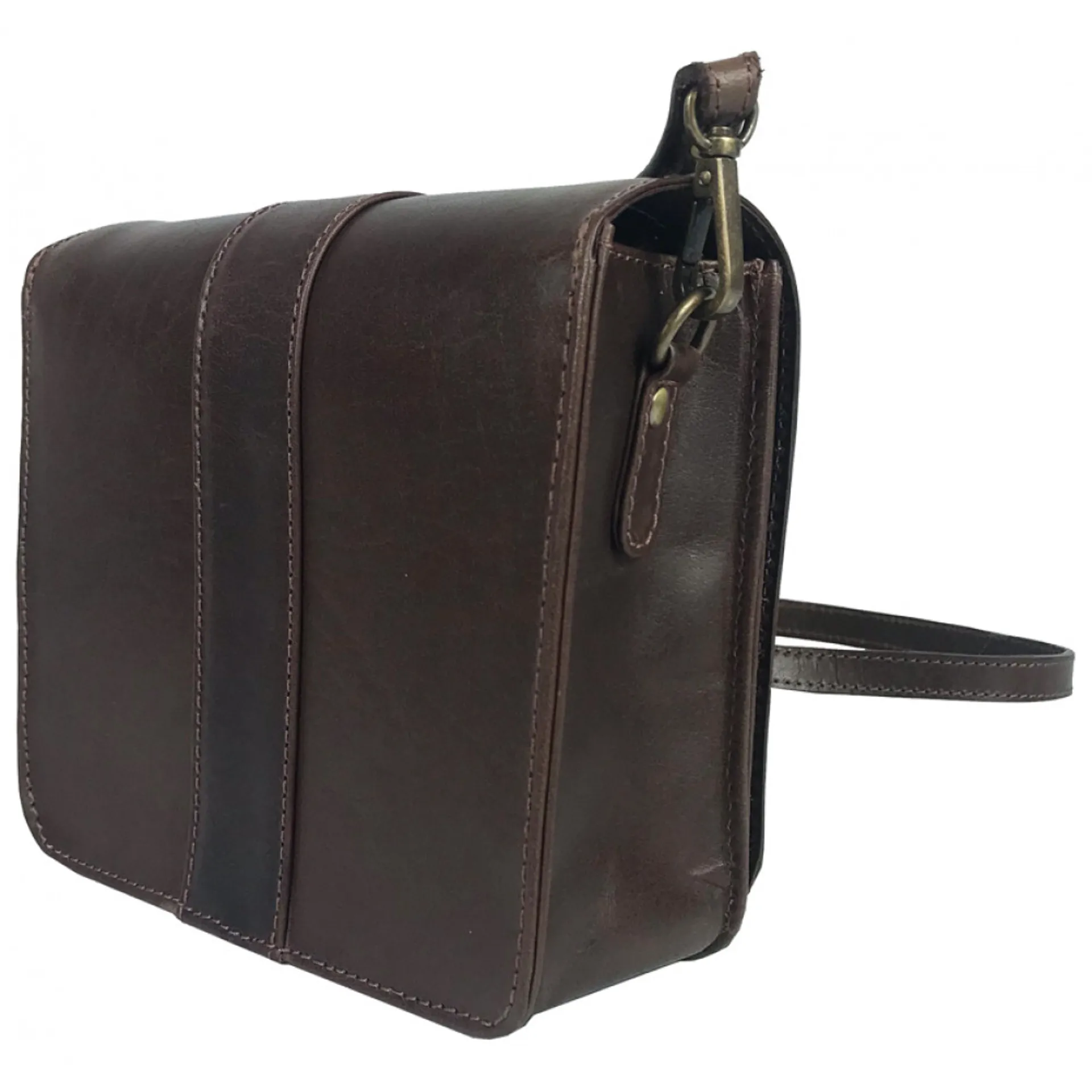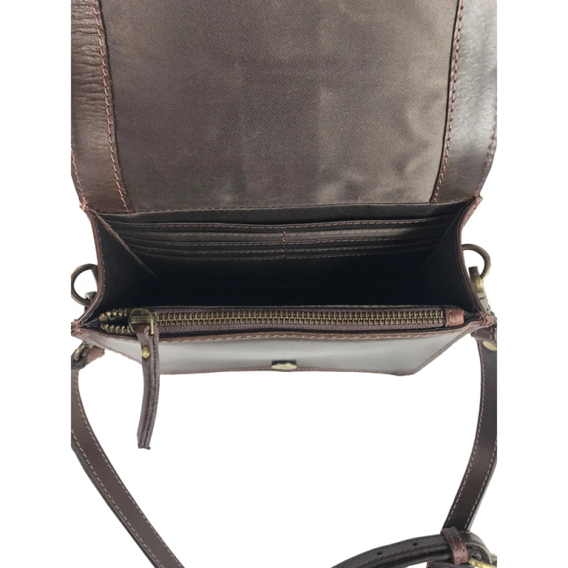 Compact Equestrian Inspired Side Bag. Featuring Internal Card Slots And Zipped Coin Pocket Perfect For Day Or Evening. Made From Buffalo Leather Which Is A Thick Strong Leather. It Has Natural Waxes And Oils In The Leather Which Means It Softens As It's Used. This Leather Will Also Get Character To It As It's Used. It Will Slightly Alter In Tone And Initially It May Mark But After Time That Will Stop. It Is An Antique Style Leather Which Is Designed To Wear With You.