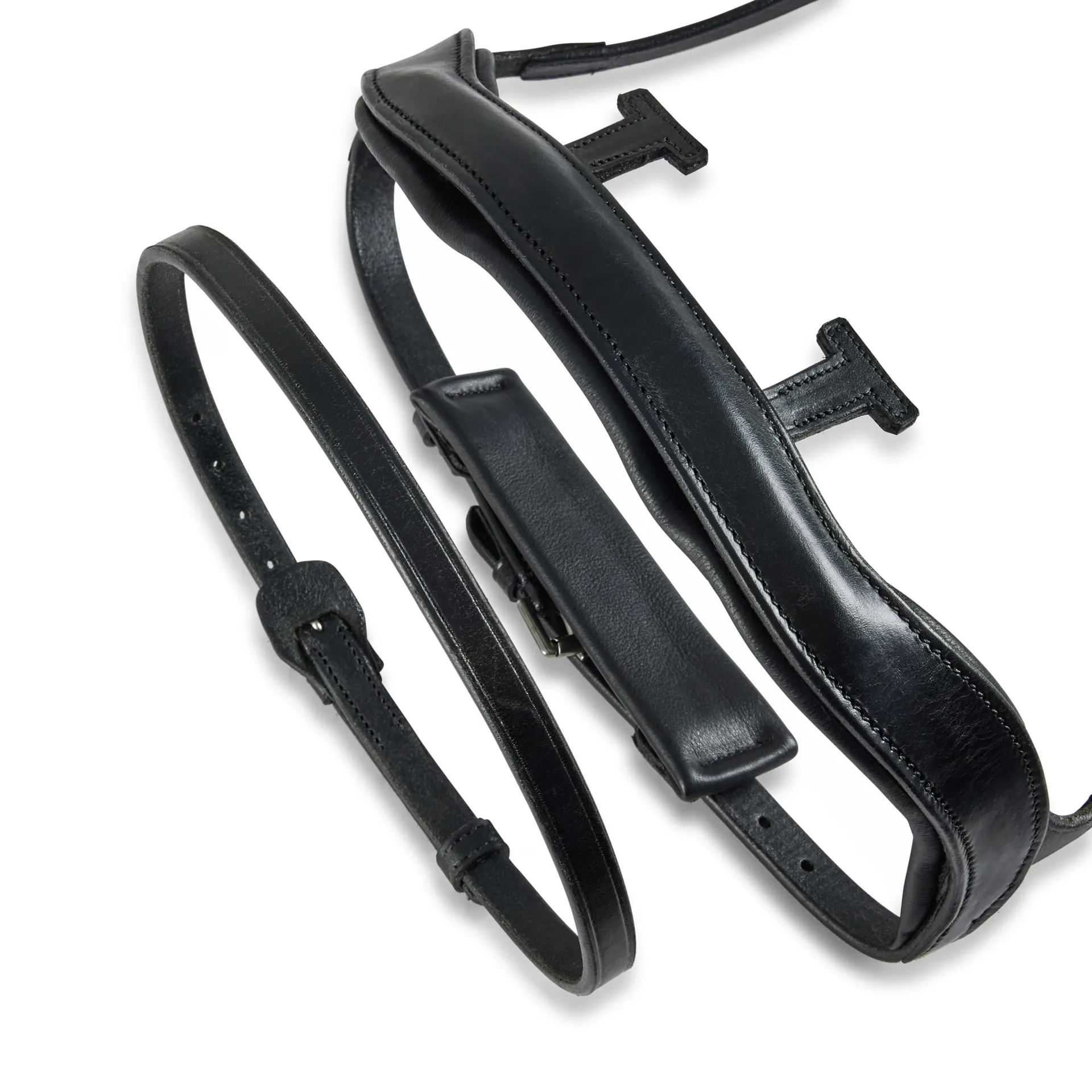 SeamFree™ Technology. All structural stitching is recessed and bonded between leather layers, leaving a 100% smooth, ridge-free contact surface against the horse's face.