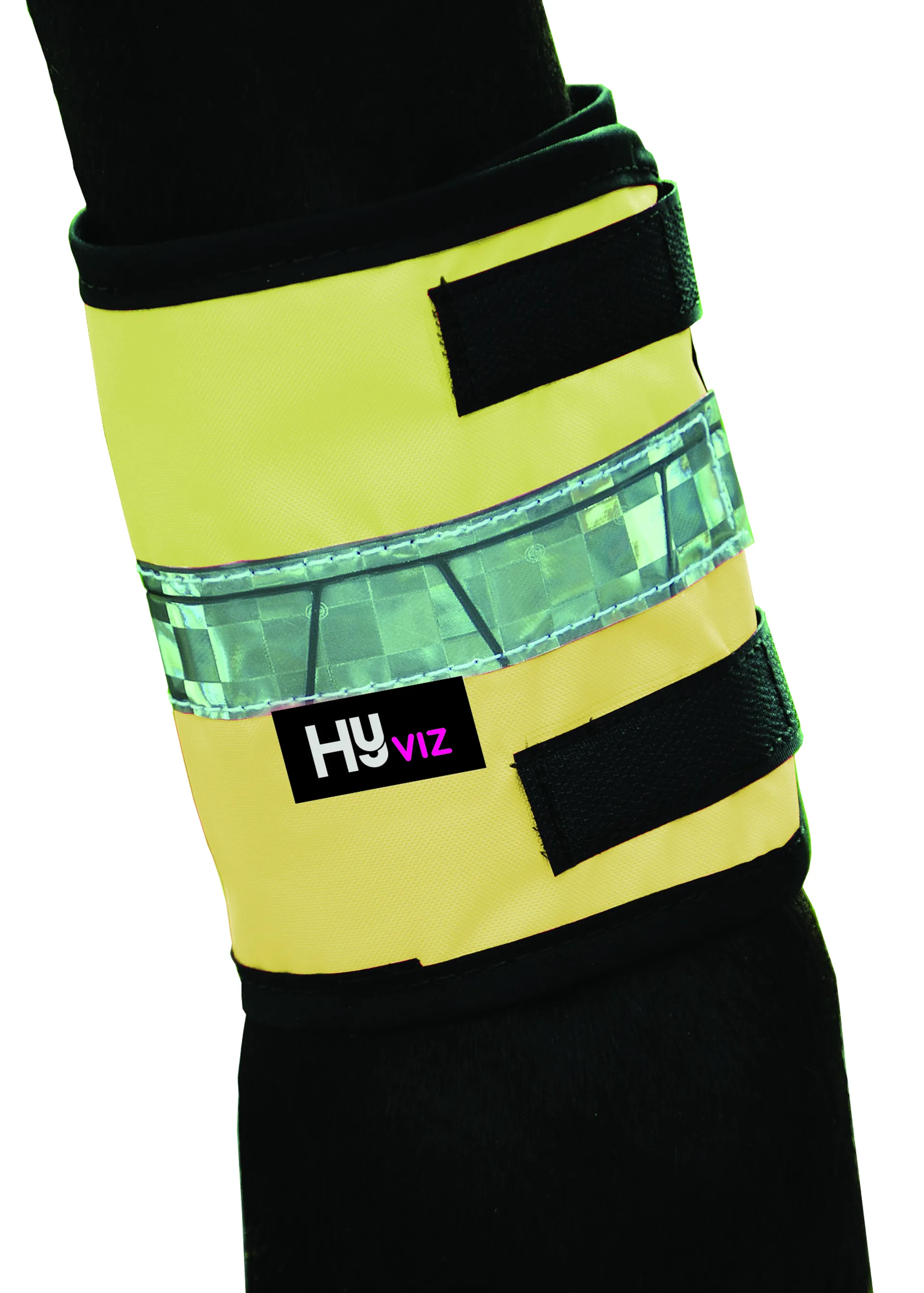 HyVIZ Leg Bands fit neatly around the horse's leg or over their boots. Fluorescent with silver retro-reflective tape for style and safety. These durable leg bands have a mesh inner lining to prevent the horse getting hot, and fasten with two strong Velcro straps. Machine washable at 40ºC. All year round visibility. 1 pair per pack - Pony or Cob/Horse